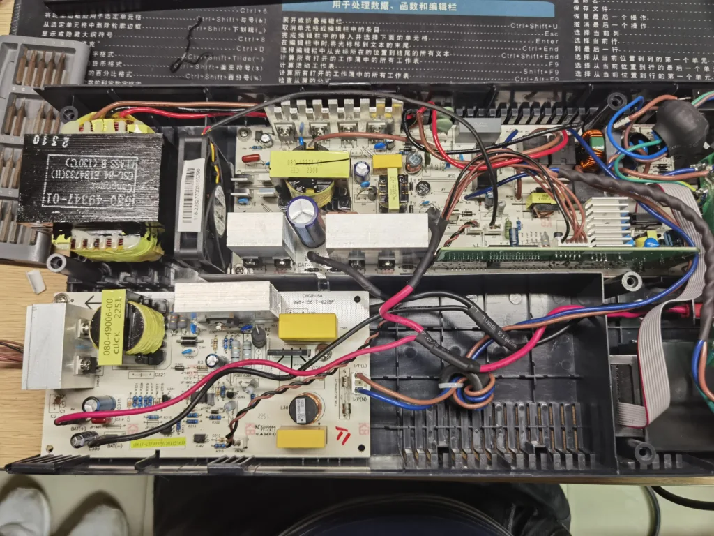 第二天,骑着共享单车的我怀着忐忑的心情只能赌一把带着 ups 来到了山特的售后部,只见一个小平房,里面堆着很多等待抢救的 ups,周边还放着一堆备件的纸箱,室内那叫一个热,售后工程师拿着机器先是查了序列号,确定在保,然后连电池测试了一下就在我震惊的心情中拆开机器查阅了 PCB 丝印上写着的型号并找寻出适配的主板直接替换,我还纳闷,咋不去研究一下是否人为就直接更换了,根据华为之类的顶级 to c 端售后来说应该会先选择调查而不是直接换件吧,但实际上人家的售后就是这么牛逼,信任消费者,同时客观上来看这种企业级的东西也确实不太会出现问题,to b 的产品一般钱多事少,设计上本着皮实耐用去的,严格按照操作指南操作不容易出问题的,说了这么多也就由此引申出一个问题,这台机器究竟如何损坏的?