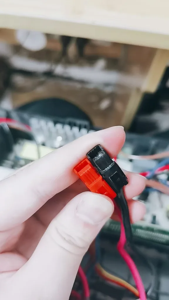 还有第二个坑点,就是那个安德森接头有问题,我怎么发现的呢,他大爷的,我用了一年了,然后突然有一天断电没一会 ups 就撑不住了,我寻思实际上也就用过几次这个铅酸电池啊,那怎可能是电池问题,另外断电报警声音好像更急促了,灯原本不闪,现在闪,那指定是 ups 本身问题啊,于是我拆开检查了一遍,测测试试加焊一通整,还是那样,然后我手工放电的时候一模电池线,我靠烫的,一拔插头,一开始没看出什么,后面怎么想怎么不对,按照经验来说,电线肯定不会无缘无故发烫,电线发烫只有两种可能,一是线承载不住电流导致电变成热能,但不可能,我用的是卖家给我的好线啊,12awg 的吧,然后我又仔细看了看接口,哦嚯,负极的端子塑料好像有点融化了。
