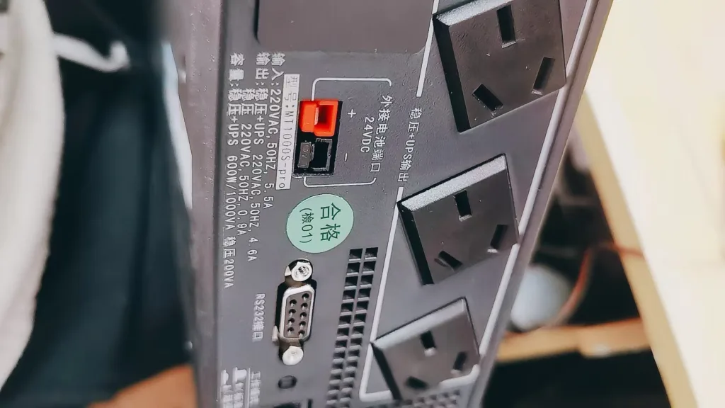 另外一个好的 ups 应当有一定的稳压功能,像我这台就提供了两种工作模式,通过屁股后面的按钮可以调节,分别是超强和标准模式,我将其称之为发电机和市电模式,发电机模式这玩意顾名思义就是给连接到发电机的 ups 使用的模式,专门给那些长停电停长电的有备用发电机的地方使用的,电压输入范围宽,主打的就是一个当市电停电的时候 ups 能够给用电器一个短时间的支撑,够撑到发电机开起来工作恢复用电;这玩意适合那种通讯基站,医院这些需要极高稳定度的地方使用,他们一般会配备柴油发电机,但是柴油发电机发的电波动大,电压可能高也可能低,或者那些偏远地区电网波动大的,具体你懂的