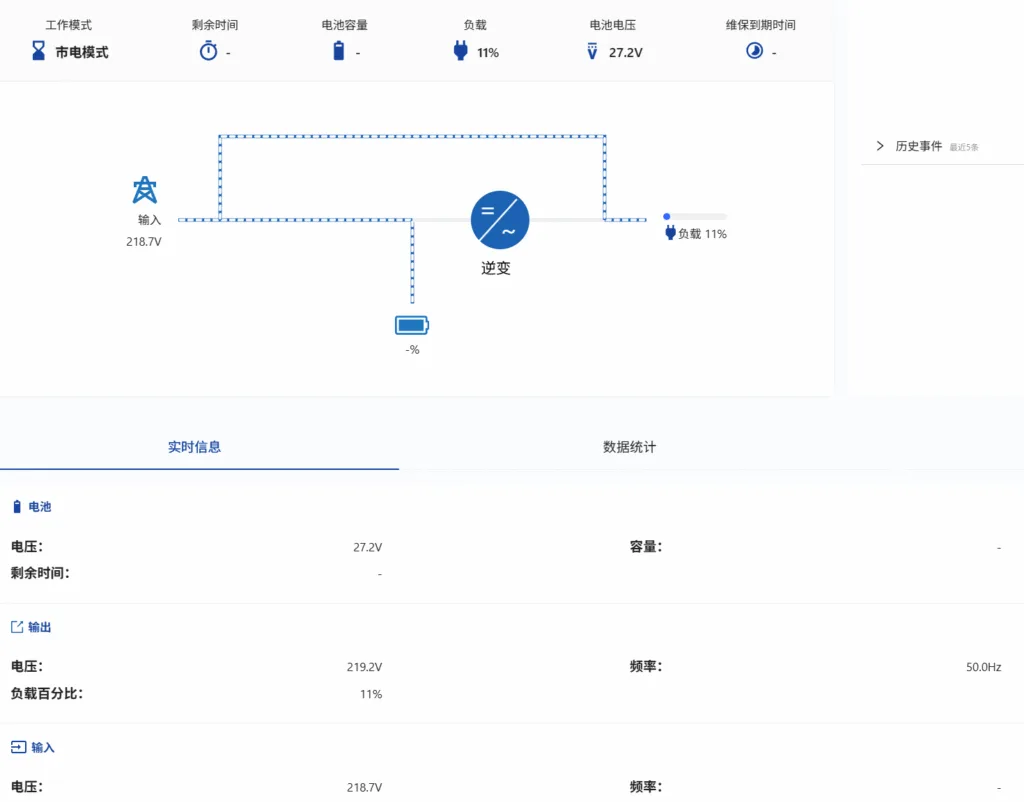 然后不仅如此,还有当前 ups 状态的数据,设置维保,数据的趋势图,断电发送邮件,故障报警,设置定期放电保持铅酸电池的寿命等等 (我这款不支持设置放电时长,只能 10 秒钟放电测试那种),原来是数据中心用的软件,所以拿到家自己用也很健全吧?