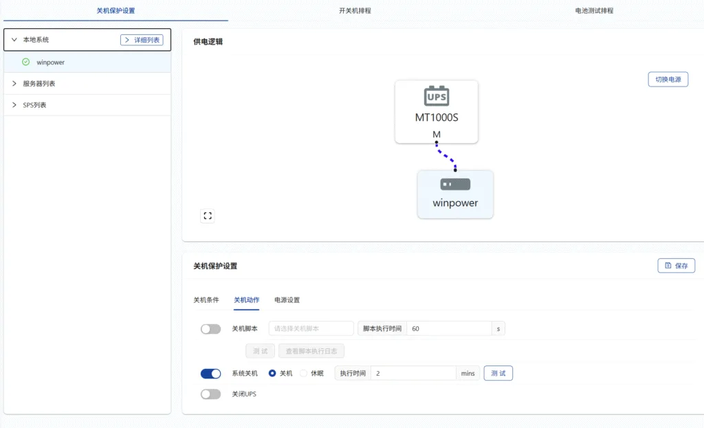 网络通讯功能对我来说是众中之重了,它可以拓展网络通信卡,但是实际上我去看了一下官方的价格直接劝退,所以我采用的是 usb-rs232 的转换线插到局域网一台服务器上,然后安装它官方的管理软件实现网络群控,最终效果能达到市电断电指定时间能够关闭我的设备防止突发断电,这就足够了,毕竟咱也不可能加钱买一堆铅酸电池备着不是吗,所以这个 ups 实际作用就是当市电切断短期应付几分钟,几分钟还不来电就关机得了,别硬拼,不值当。